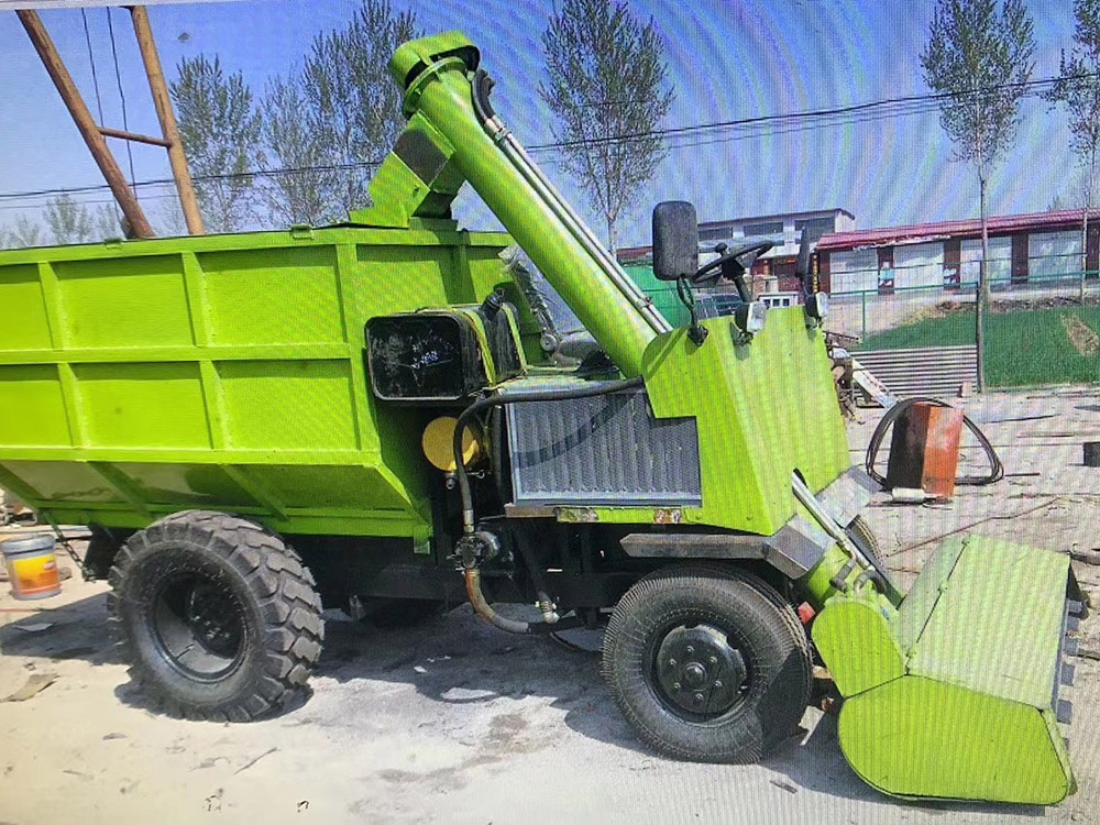 牧場自走式清糞車,490馬力柴油發動機,鏟車無級變速箱。鏟車行走橋,全液壓控制,重型鏈條刮板上料,糞干,糞稀都不怕,3立方料箱,清糞、運輸一機完成。專為養殖牛場設計,方便快捷,節省人工,節省時間。 新型牧場自走式清糞車,屬于畜牧機械領域,規模化奶牛場清糞車中,車斗為上寬下窄的倒梯形